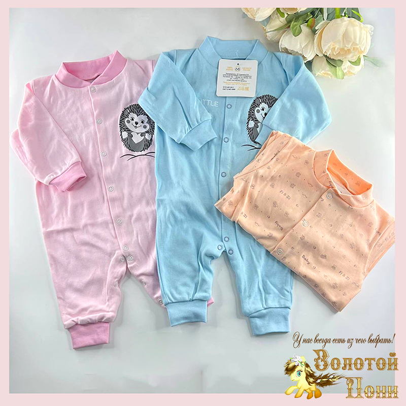 Модели 56 и 62 с закрытыми ножками и царапками, модели 68, 74, 80 без ножек/принты в ассортименте